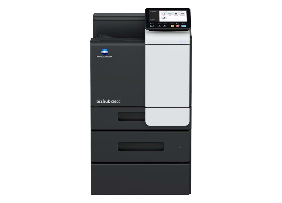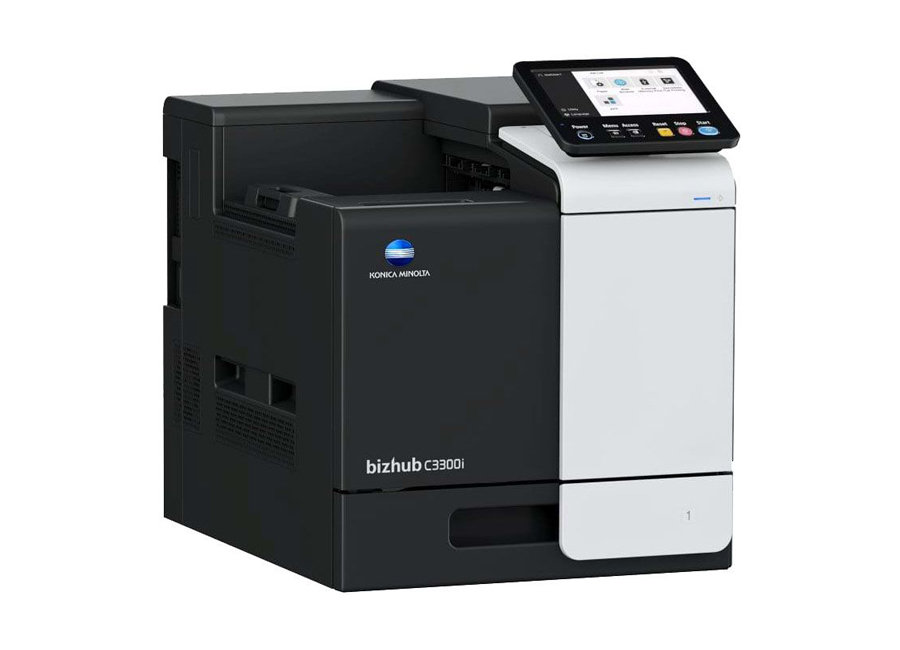 Konica Minolta bizhub C3300i поддерживает печать на носителях формата до А4 плотностью 60-210 г/м2. Принтер стандартно оснащен лотком на 500 листов и лотком ручной подачи на 100 листов и поддерживает установку одного дополнительного лотка подачи на 500 листов.