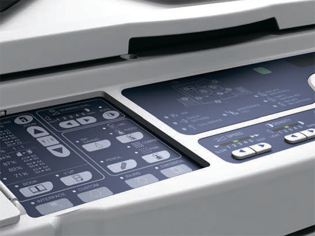 Для соединения вашего компьютера с ризографом, вы можете выбрать любой из двух вариантов: USB 2.0 порт или сетевая плата. USB-порт обеспечит простое соединение одного компьютера и ризографа. Соединение с помощью сетевой платы сделает ризограф доступным для всех компьютеров офисной сети.Планшетный сканер: