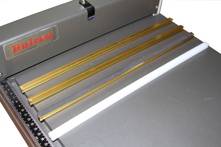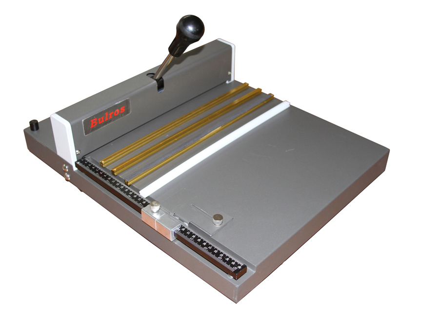 Bulros A-350 - простой и надежный аппарат для небольших тиражей. Способен биговать, перфорировать. Благодаря четырём различным сменным планкам легко перенастраивается под необходимую задачу: биговка односторонняя, биговка двухсторонняя для лучшей раскрываемости обложки, перфорация. Удобный подвижный двухуровневый упор позволяет по толщине блока задать два точных необходимых расстояния для биговки или перфорации обложки. Разметка линейки в мм.