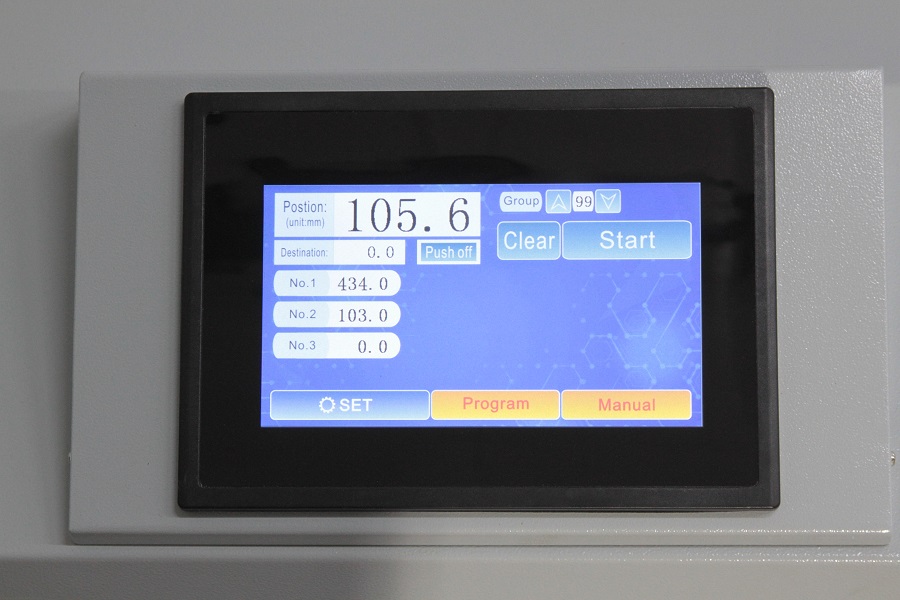 Программируемый сенсорный LCD дисплей имеет память, программирование до 99 групп по 20 позиций резов на запрограммированном расстоянии. Функция непрерывного реза с заданным шагом. На сенсорном LCD дисплее имеется цифровая клавиатура для ввода параметров (координат) реза.