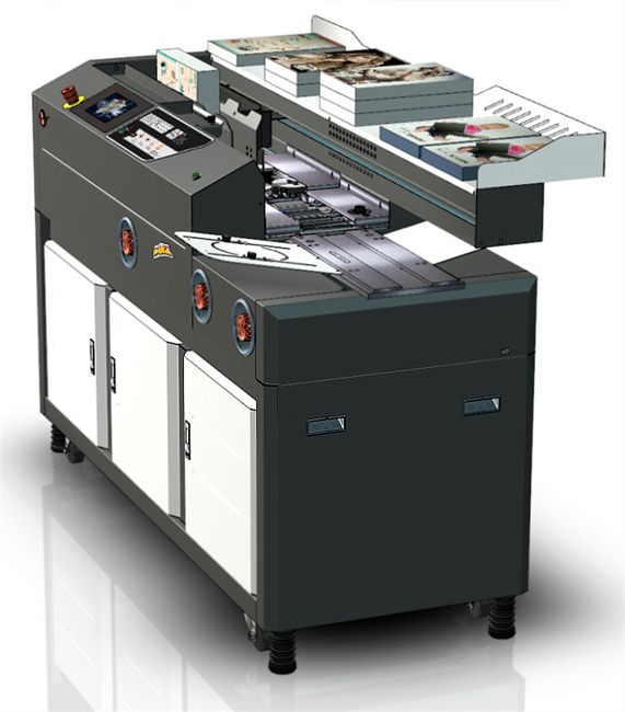 - проклеенный с торца блок помещается в обложку и обжимается с 3-х сторон автоматически.
